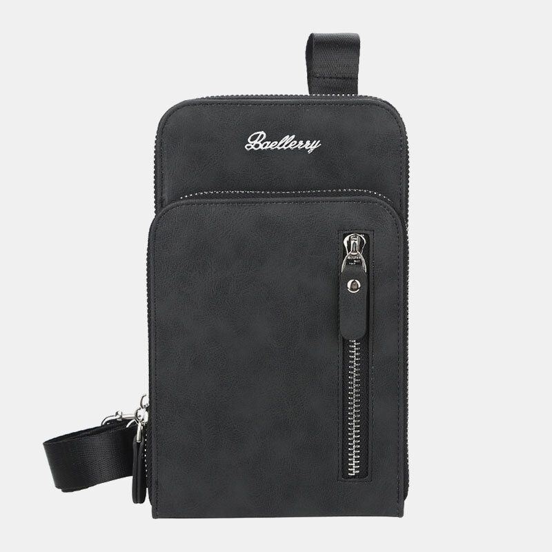 Baellerry Men Faux Leather Wielofunkcyjny Pionowy Duża Pojemność Podwójny Zamek 6.3 Cal Torba Na Telefon Torba Crossbody Portfel