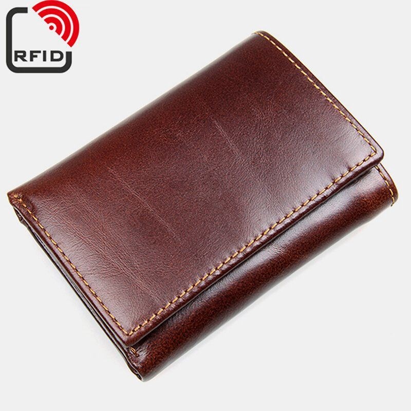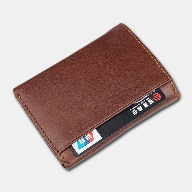 Blokujący Skórzany Pokrowiec Na Karty Vintage Krótki Portfel Na 7 Kart Składany Potrójnie Dla Mężczyzn
