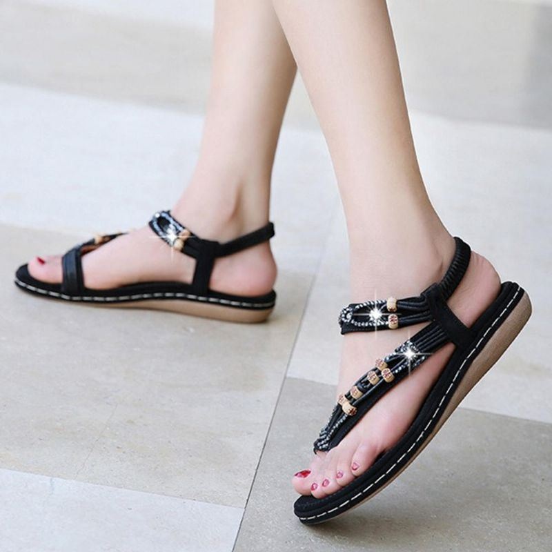 Damskie Sploty Artystyczne Rhinestone Elastyczna Opaska Miękkie Sandały Na Co Dzień