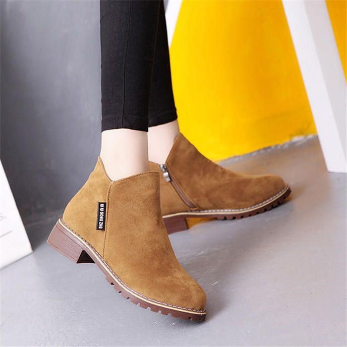 Damskie Zamszowe Buty Do Kostki W Jednolitym Kolorze Na Co Dzień