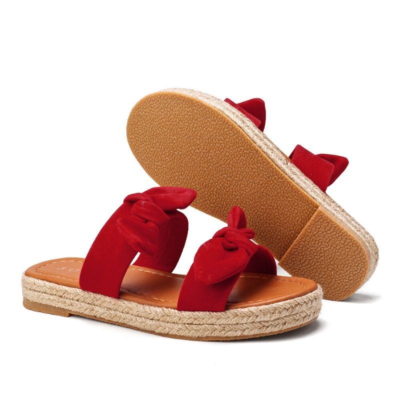Duże Rozmiary Damskie Kapcie Z Lnianą Podeszwą Z Kokardką