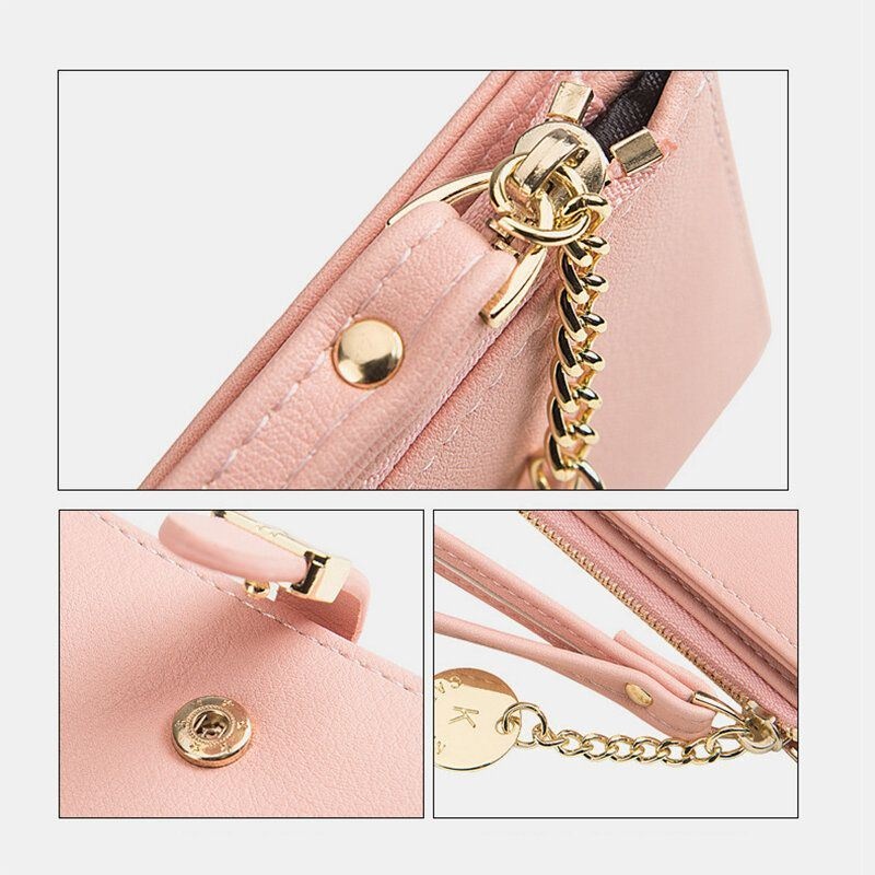 Kobiety Pu Skórzany Cienki Jednolity Kolor Bifold Długa Torebka Portfel Na Karty