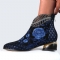 Kobiety Wygodne Miękka Skóra Haftowane Kwiaty Rhinestone Masywny Obcas Botki