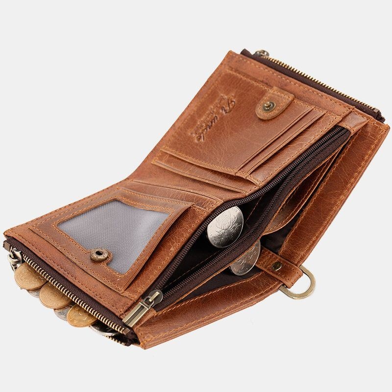 Mężczyźni Bifold Anti-theft Portfele Z Prawdziwej Skóry Krótki O Dużej Pojemności Uchwyt Na Wiele Kart Portmonetka Portmonetka Klip Na Pieniądze