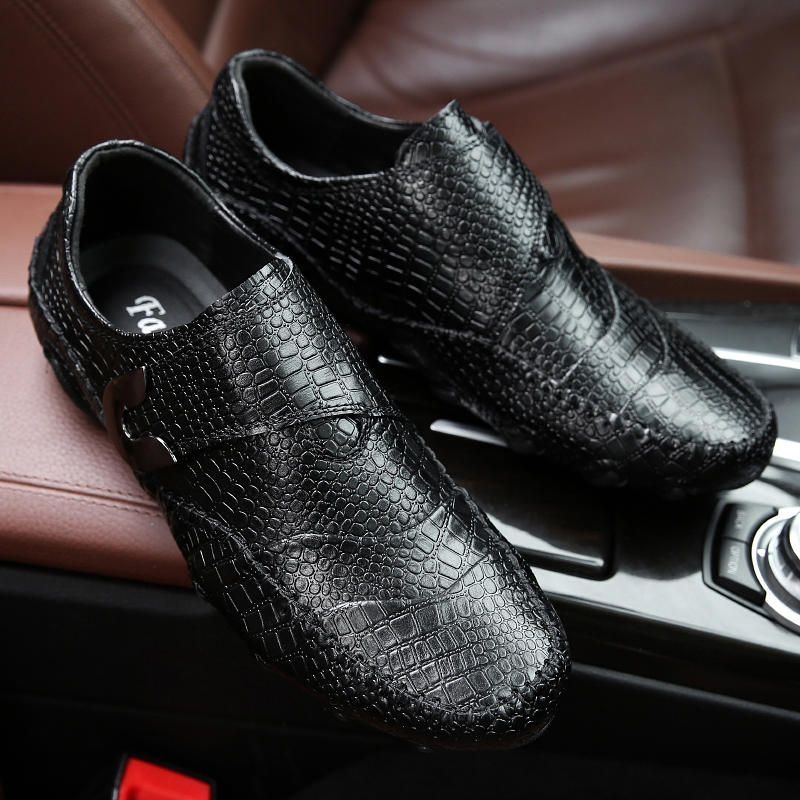 Mężczyźni Casual Buckle Wzór Aligatora Oksfordzie Z Prawdziwej Skóry