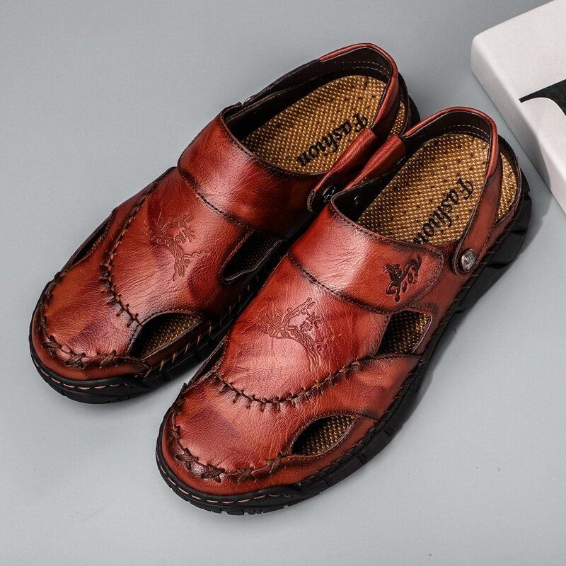 Mężczyźni Przyprawiające Skórę Wołową Oddychające Drążą Antypoślizgowe Sandały Na Co Dzień
