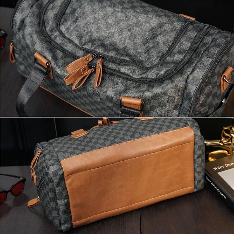 Mężczyźni Pu Skóra Wzór W Kratę Wielofunkcyjna Torebka Moda Z Wieloma Kieszeniami Torba Podróżna Torba Fitness Torba Crossbody Torba Na Ramię