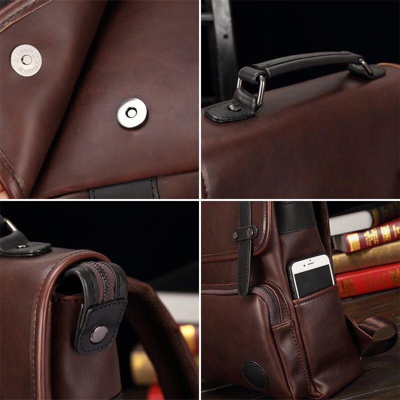 Mężczyźni Pu Skórzany Plecak Podróżny O Dużej Pojemności Z Wieloma Kieszeniami Torba Studencka Torba Na Laptopa