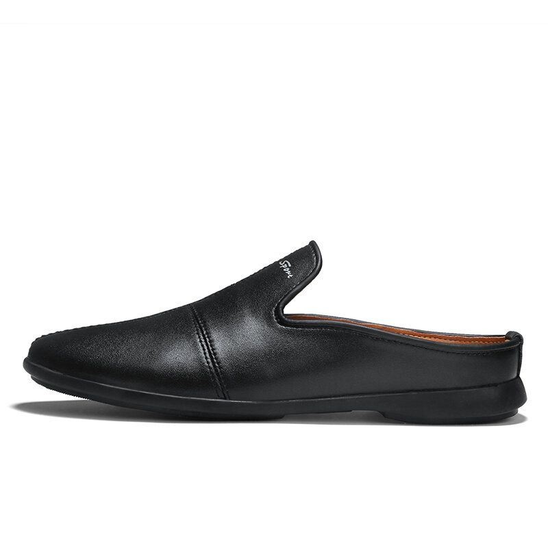 Mężczyźni Skóra Z Mikrofibry Miękka Podeszwa Sling Back Antypoślizgowe Zamknięte Toe Płaskie Kapcie Na Co Dzień