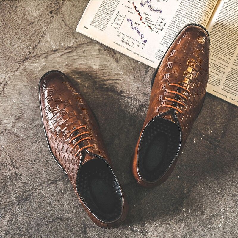 Mężczyźni W Kratę Zasznurować Suknię Biznesową Oksfordzie Formalne Buty