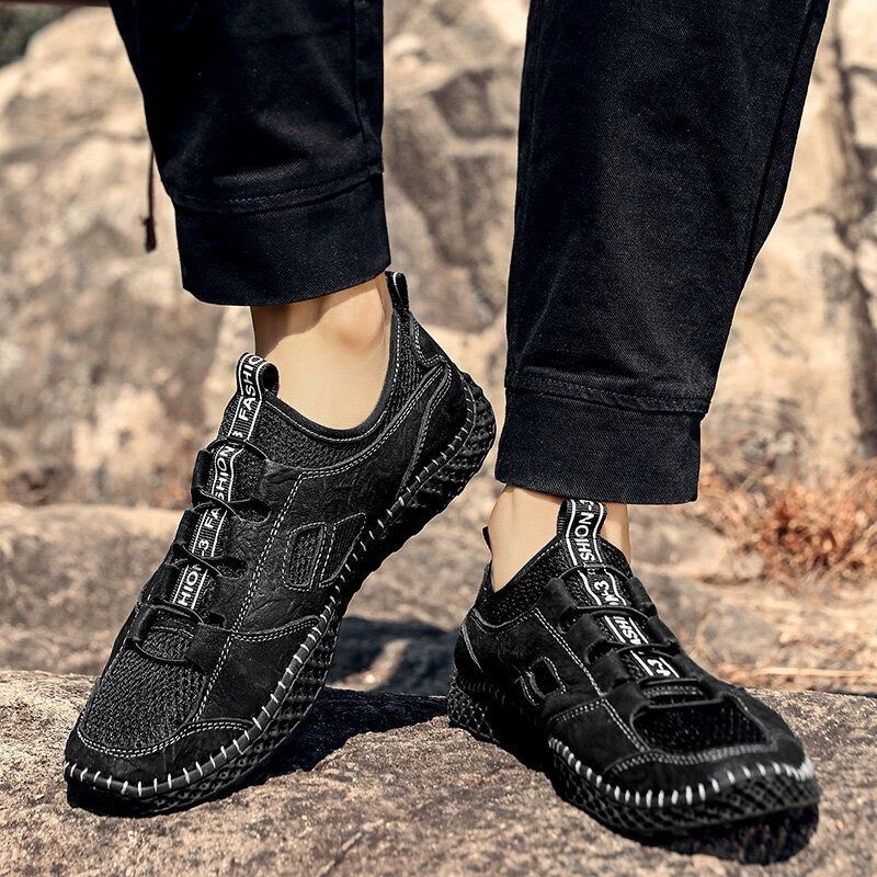 Męska Oddychająca Siatka Ze Skóry Bydlęcej Na Co Dzień Na Zewnątrz Trampki Turystyczne