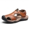 Męska Skóra Bydlęca Oddychające Miękkie Dno Antypoślizgowe Zamknięte Toe Hook Loop Casual Outdoor Sandały