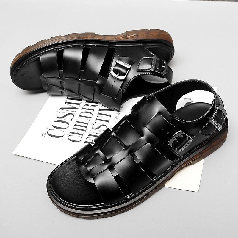 Męska Skóra Bydlęca Oddychające Tkane Miękkie Dno Antypoślizgowe Sandały Z Otwartymi Palcami