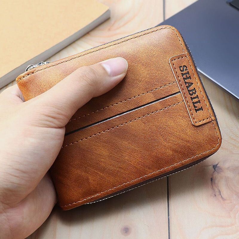Męska Torebka Ze Sztucznej Skóry O Dużej Pojemności Z Wieloma Gniazdami Business Bifold Short Zipper Wallet Purse