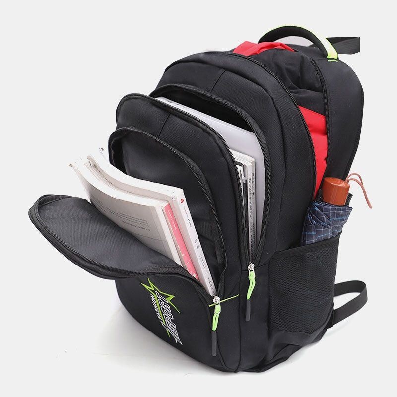 Męski Nylonowy Wielowarstwowy Wielowarstwowy Plecak Szkolny O Dużej Pojemności W Jednolitym Kolorze