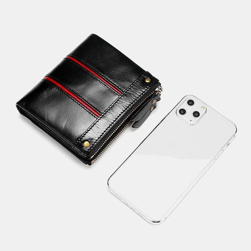 Męski Portfel Antykradzieżowy Z Woskowanej Skóry W Stylu Retro Ze Skóry Wołowej Na Zamek Błyskawiczny