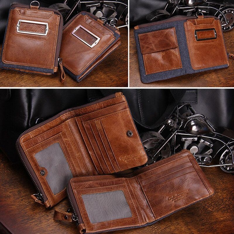 Męski Skórzany Zamek Błyskawiczny Retro Business Multi Card Slot Skórzany Portfel Na Karty Z Odpinaną Torbą Na Karty