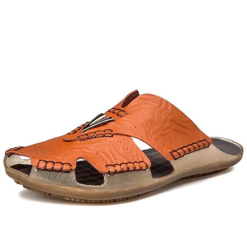 Męskie Kapcie Plażowe Z Miękkiej Podeszwy Z Prawdziwej Skóry