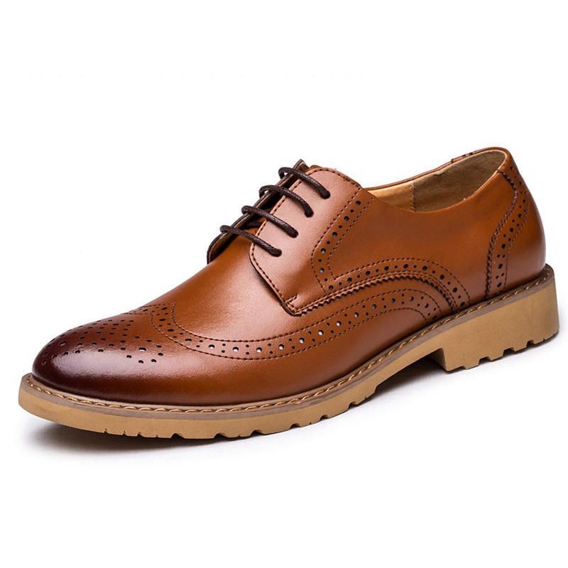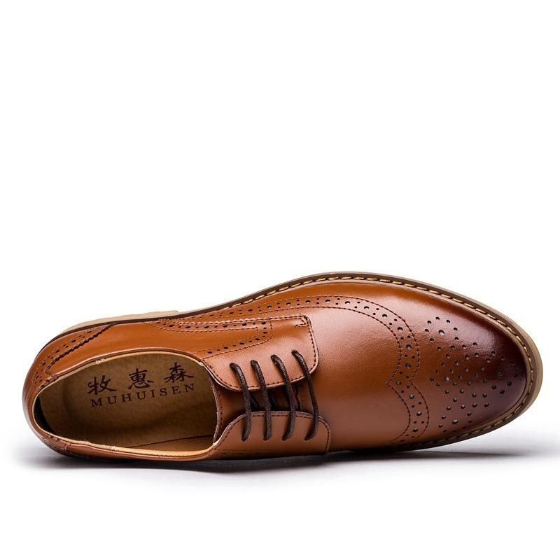 Męskie Oryginalne Skórzane Półbuty Rzeźbione Business Casual Oxfords