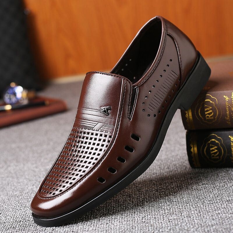 Męskie Skórzane Buty Z Mikrofibry Oddychające Drążone Buty Na Co Dzień