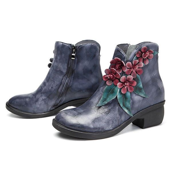 Vintage Ręcznie Robione Skórzane Buty Do Kostek W Kwiaty Dla Kobiet